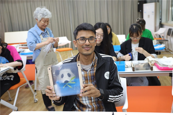 在上海这座国际化大都市办学,华理国际教育学院也学习并思考着如何向留学生这个特殊群体讲好中国故事,传承中华文化之美,搭建文明互鉴之桥。“通过前期调研发现,国际学生除了在课堂上学习中国文化,非常希望在生活中体验中国文化,而社区学校也需要更多海内外受众传承推广非遗文化。”院长、党支部书记李霄鹏表示,最近一个主题党日,学院在周边凌云社区学校启动国际学生文化实践基地建设,让“一带一路”上首批20多名留学生与社区教师和志愿者一起,体验古法造纸、饾版印刷、“多层纸艺——萌宝熊猫”等项目,一同培养知华、友华国际化人才。