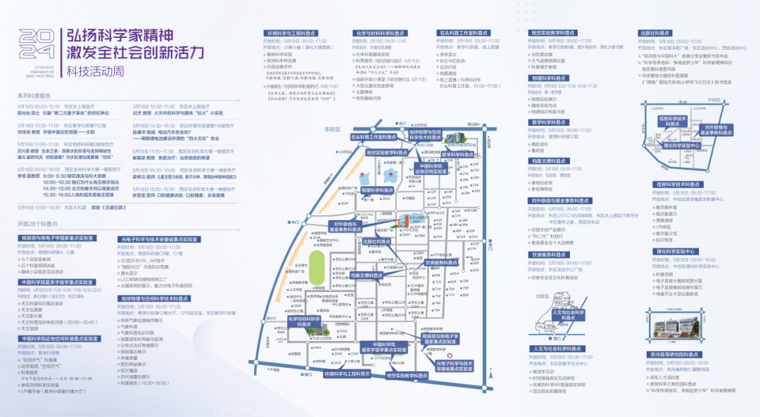 科技活动周是由中国科大举办的大型的、集中的面向社会公众的科普宣传活动,期间,中国科大将向社会公众开放国家同步辐射实验室等20余个科学研究实验室,由研究人员进行现场演示和讲解,并专门制作了科技成果展览、多媒体科普介绍等。